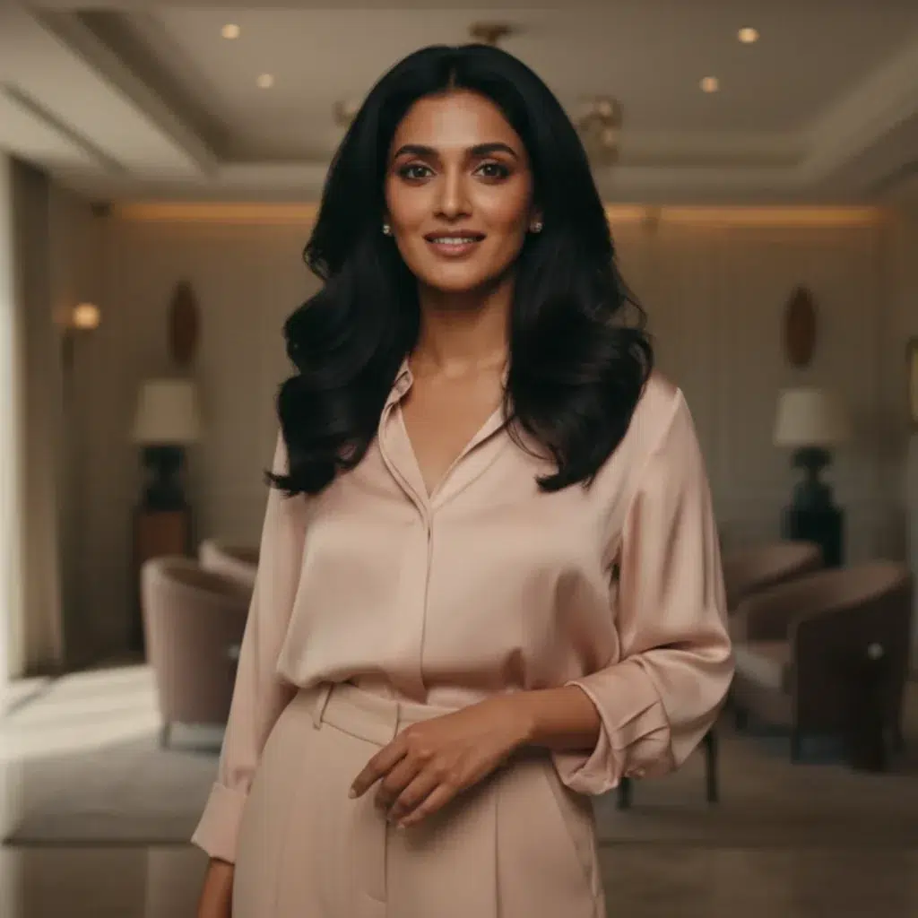 AI-IP Number: AIIPA2103Gender: FemaleAge: 28–36 yearsRegion Look: Indian (Urban Sophisticated / Premium Professional Look)Skin Tone: Medium Wheatish with Warm Neutral UndertonesFace Type: Oval, Well-Balanced, Camera-FriendlyLook Category: Lifestyle, Corporate, Real Estate, Hospitality, Luxury Living, Premium Brand AdsExpression Style: Calm, Confident, Welcoming