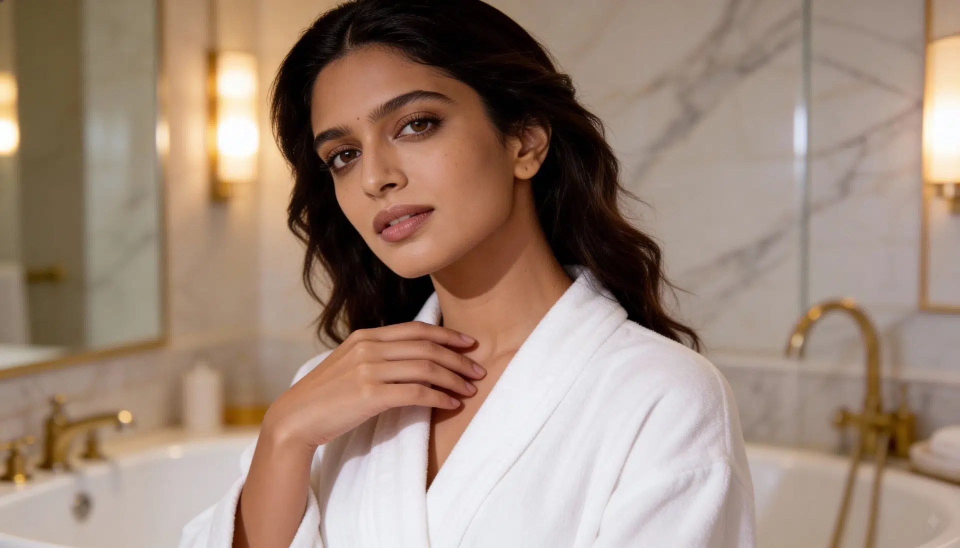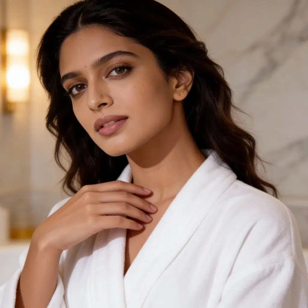 AI-IP Number: AIIPK2086Gender: FemaleAge: 22–28 yearsRegion Look: Indian (Urban, Premium Commercial Look)Skin Tone: Light to Medium Wheatish / Warm BeigeFace Type: Soft, Elegant, Commercial-FriendlyLook Category: Luxury / Beauty / Skincare / Lifestyle / HospitalityExpression Style: Calm, Confident, Sophisticated