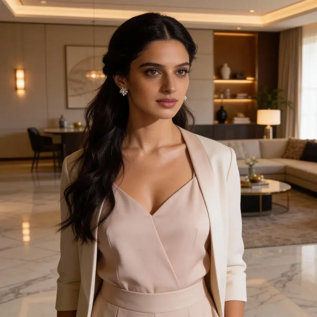 AI-IP Number: AIIPM2090Gender: FemaleAge: 24–32 yearsRegion Look: Indian (Premium Urban / Luxury Commercial Look)Skin Tone: Light Wheatish / Warm Ivory-BeigeFace Type: Elegant, Refined, High-Fashion ReadyLook Category: Luxury Brands, Beauty, Skincare, Real Estate, Hospitality, Premium AdsExpression Style: Poised, Confident, Sophisticated