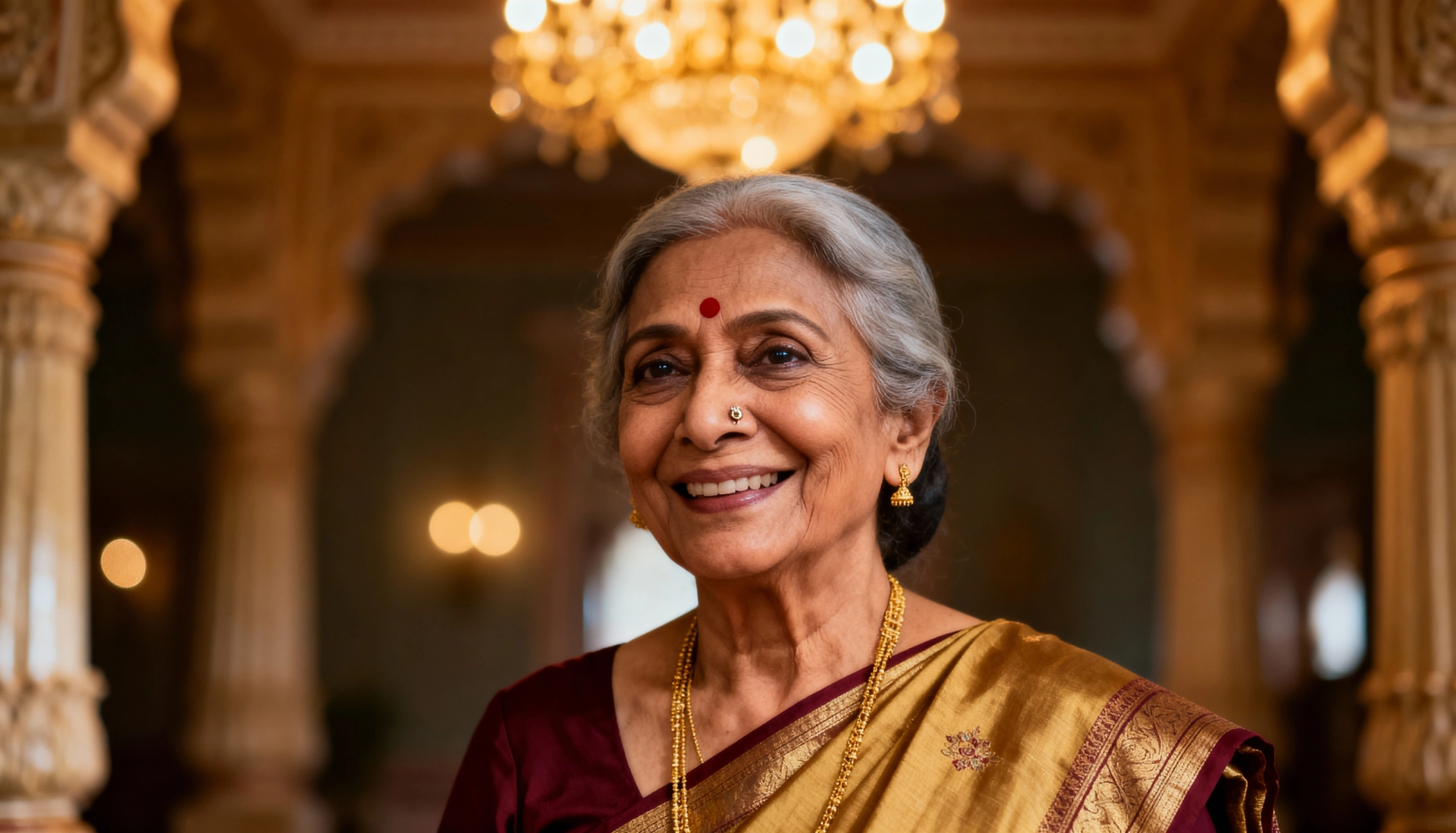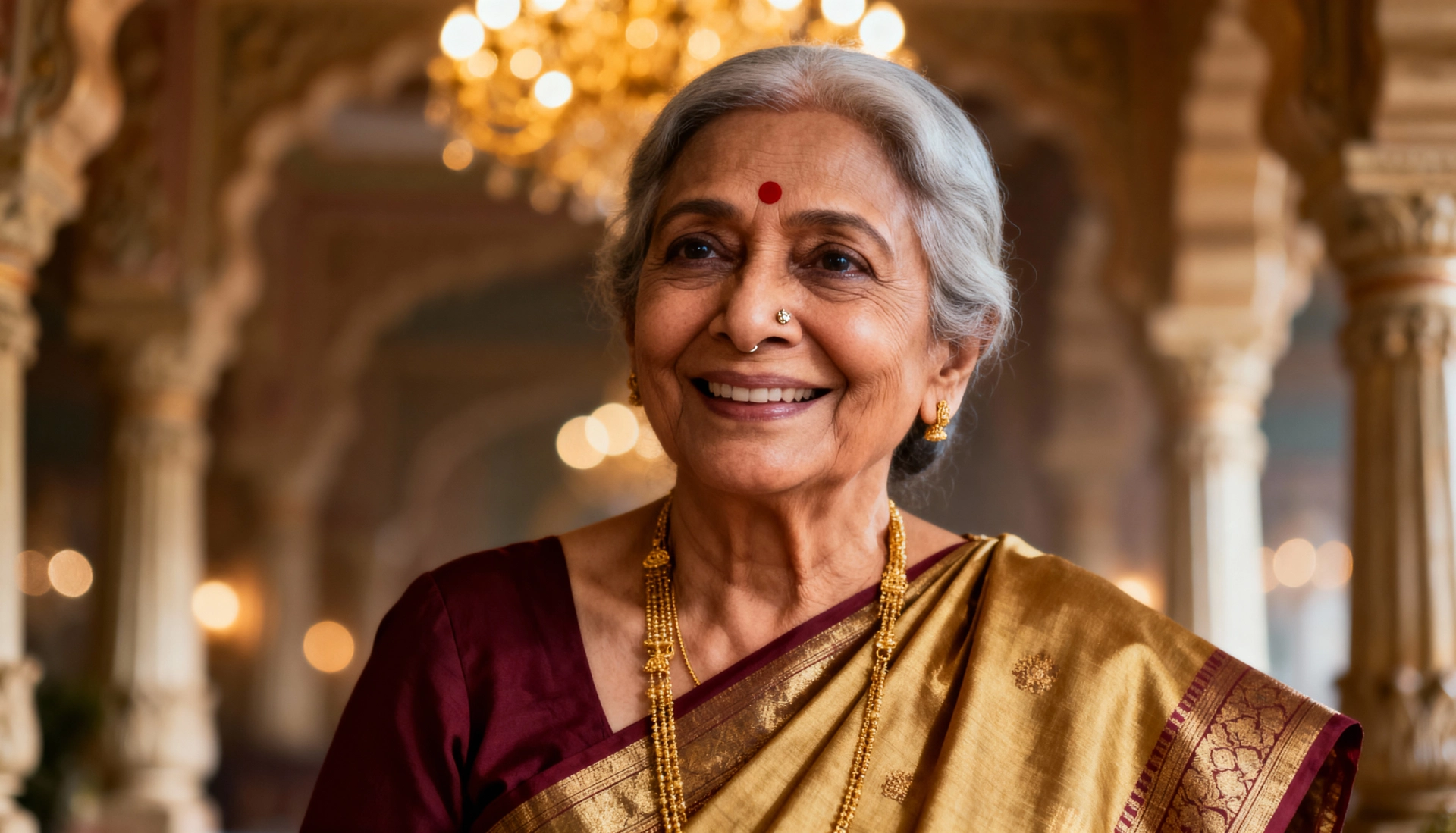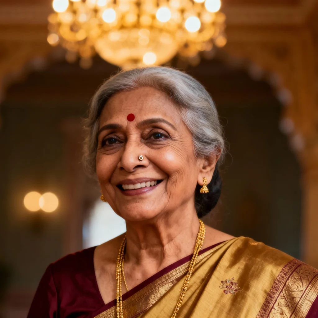 AI-IP Number: AIIPR2101Gender: FemaleAge: 60–70 YearsRegion Look: Indian (Traditional / Cultural / Heritage Look)Skin Tone: Medium to Wheatish with Warm UndertoneFace Type: Oval / Soft Round with Mature FeaturesLook Category: Family-Oriented Ads, Traditional Wear, Jewellery & Festive CampaignsExpression Style: Warm, Graceful, Kind, Trustworthy